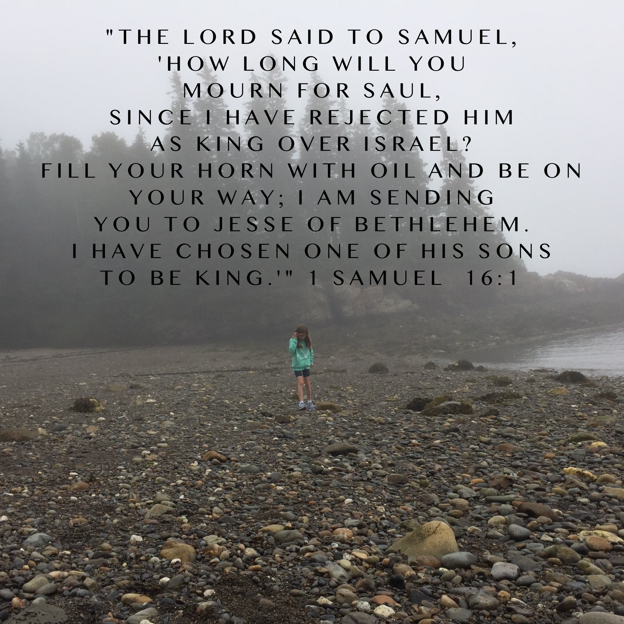 “The Lord said to Samuel, “How long will you mourn for Saul, since I have rejected him as king over Israel? Fill your horn with oil and be on your way; I am sending you to Jesse of Bethlehem. I have chosen one of his sons to be king.”” 1 Samuel 16:1